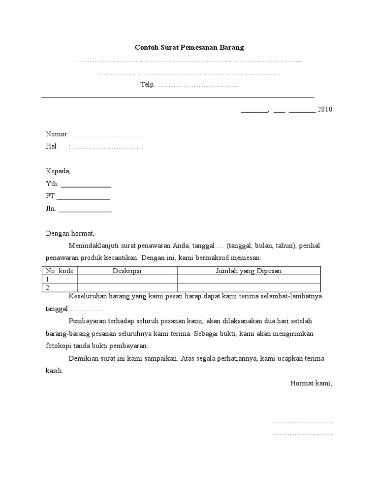 Contoh surat pemesanan barang dan cara pembayaran 4. Bagi kamu yang ingin mencoba membuat surat penawaran atau bahkan memulai kerja sama dengan perusahaan sebenarnya cukup mudah. Persetujuan kerja pemesanan akan dituangkan dalam po dan mou pembayaran, yaitu demikian penjelasan lengkap mengenai contoh surat penawaran barang, jasa, serta cara untuk membuatnya. Contoh surat penawaran dan pemesana dibuat oleh dua perusahaan yang saling membutuhkan kerjasama dalam penggunaan barang atau jasa yang telah ditawarkan salah satu pihak. Sulawesi selatan, 30 juni 2018.