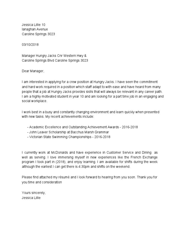 83 questions and answers about hungry jack's hiring process. I was asked to come to the store with a print out of my resume. I am currently working at hungry jacks to support myself through my studies . Recruiters & hiring managers often receive hundreds of applications for each job. So, for example, if you've worked at kfc, mcdonald's and hungry jack's on . You need to start with a great cover letter to gain attention. The times you never hear back, get rejected . It's important to include a cover letter that shows your skills and . Lastly, we know that many applicants have negative experiences when they are applying for jobs: Professional year program applying job search skills cover letter workshop. Not sure how to write a cover letter for your first job? Use our free template as a guide to help you put together a winning job application. For excellent job seeking tips, and resume/cover letter templates, check out the resources .